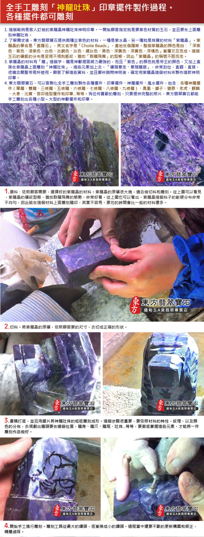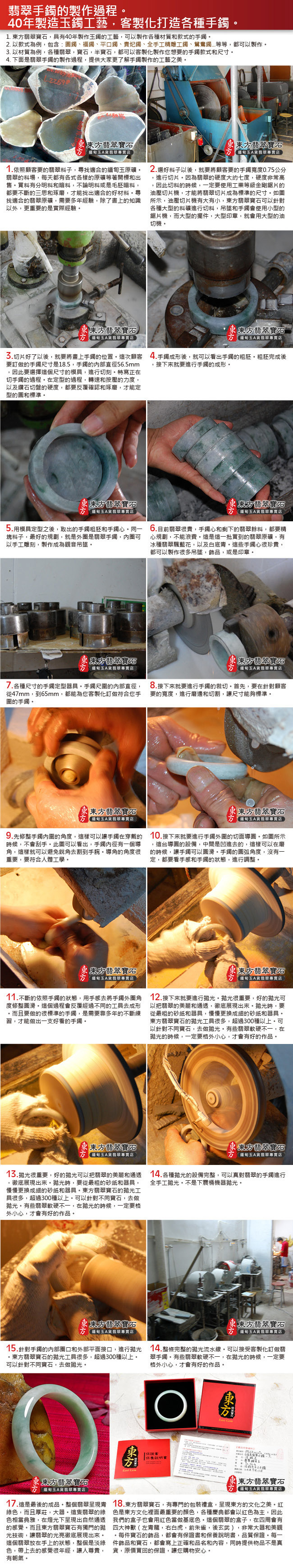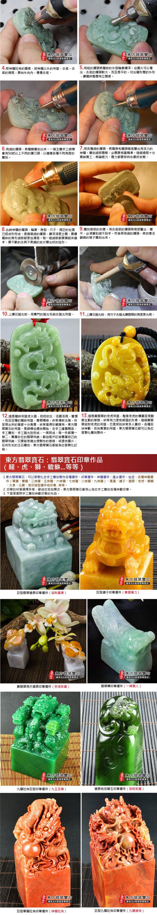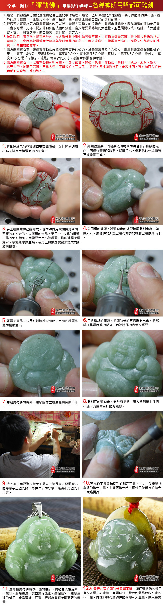 商品規格 1.產品名稱:釋迦牟尼佛A貨翡翠玉墜墜子一只 2.尺寸:長約3.5公分x寬約2.6公分 3.厚度:約0.6公分 4.重量(克):約11.38克 5.證書:玉石保證書和店家保證書 6.商品編號:FD-071 體驗說明 使用方法說明 無 注意事項 1.網路的刊登商品,店面皆同步銷售,商品皆為一件,賣掉就沒有了。因此請您在訂購之前,需要先用電話詢問或是來信確認有貨,再下單訂購。附註:商品都可以訂做,因此已經售出的商品,如果您有確定要購買,都可以為您客製化訂做。 2.每個玉石(翡翠、寶石、半寶石、有機寶石...等等),都會有屬於自己的特殊紋路,石脈紋,礦石晶體紋理,冰裂紋,雲霧,色帶的深淺變化,各種原礦共生的結構,以及玉石天然的紋理和礦缺。對於東方翡翠寶石的購買,如果是線上購買,東方一定會再次拍照讓您看過,確認無誤才會出貨。 3.每件寶石和飾品的照片,顏色,都會因為電腦螢幕色差,色溫差異,解析度,或是手機螢幕的色差,而有所不同。對於細節要求的顧客,請勿在網站上下單,建議您要實際拿在手上親自挑選,這樣才能挑出您要的珠寶和飾品。 4.市場對於翡翠和寶石提供的店家很多,每一個寶石都具有獨特性和差異性。造成這些差異的原因很多種,例如顏色、透度、種地、大小、雕刻工藝高低、早期購買還是晚期購買的時間點...等等,同時,好的礦料是越來越稀少,不同時期的購買原料成本都會不一樣。因此對於購買寶石和翡翠的買家,都建議要確認清楚,金額、產品都無誤之後,才購買,這樣是最好的互動交易。 5.購買東方翡翠寶石的珠寶、吊墜、手鐲、飾品,在全世界每一個國家,一律免運費宅配到府。我們配合的貨運包含:便利帶、郵局、DHL、FedEx、順豐快遞、黑貓宅急便、便利帶...等等,運送您所訂購的翡翠飾品。 6.在七天鑑賞期之內,東方翡翠寶石,可以提供換貨的服務。 7.超過七天的鑑賞期,無法換貨。 8.每一件商品,東方翡翠寶石會在顧客收到商品後,主動跟顧客電話聯繫。 9.如果顧客需要換貨,東方會主動了解換貨原因,以及您想要換哪一種商品。 10.確認換貨的品項和金額無誤後,請顧客將商品打包好,到7-11便利商店,用貨到付款的方式,寄送這件商品。「運費是由東方來付款」 11.顧客一定要將物品用氣泡紙打包好。寄送的翡翠和寶石,必須要保持完好的狀態。 12.誠信第一,安全第一,如果顧客寄回來的翡翠和商品有毀損,或是跟原本商品不符的內容,則不能退貨和換貨。 13.東方翡翠寶石收到顧客商品,會跟顧客聯繫。並且依照顧客想要的換貨商品,出貨給您。 14.出貨的流程,跟上面的訂購流程相同。整個流程會在完整進行一次。 |